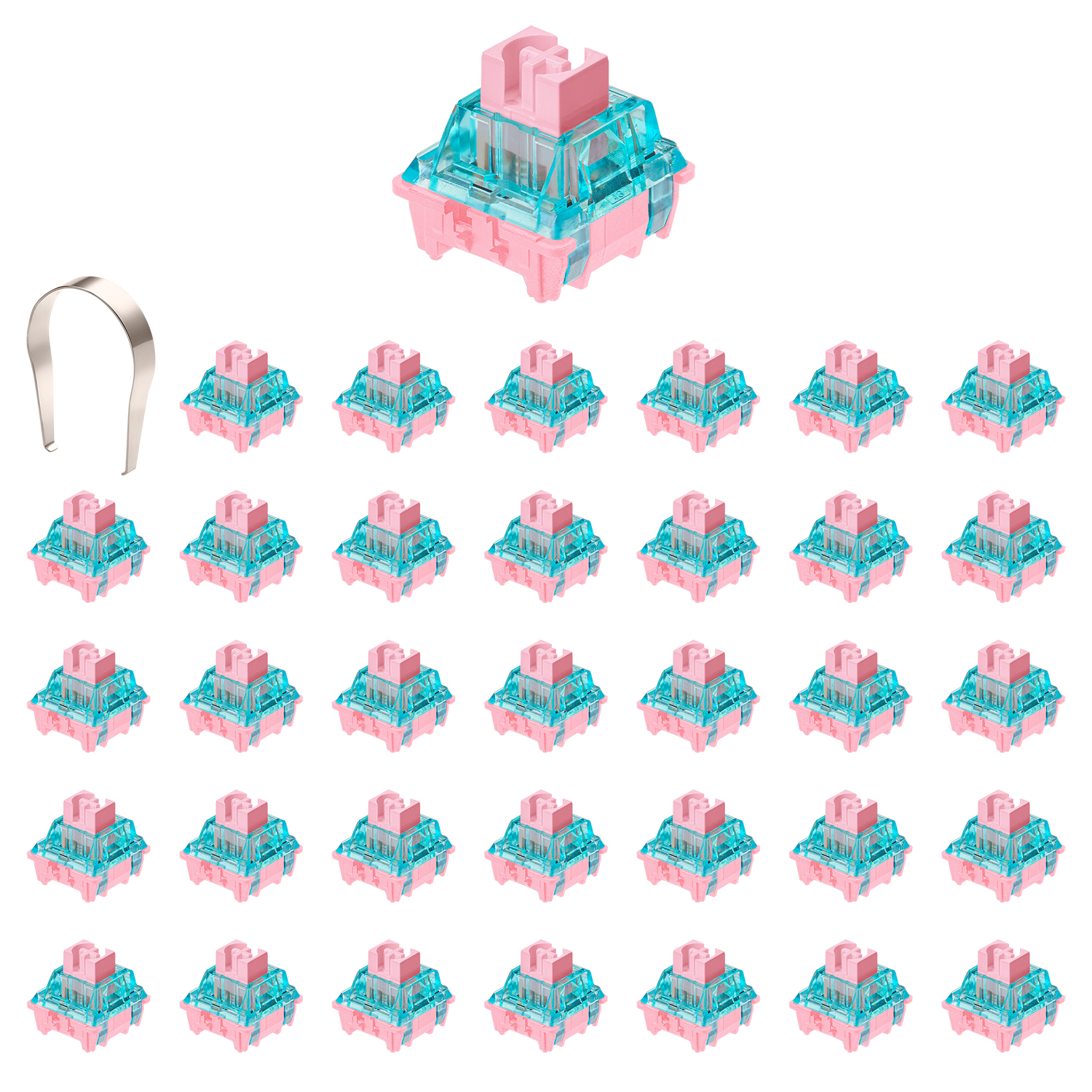 חבילת סוויצ'ים (מתגים) KTT, מסוג Rose-Pink המתאימים גם לגיימינג וגם לעבודה ביתית \ משרדית. מתגים אלו עושים שימוש במכאניזם שונה.
