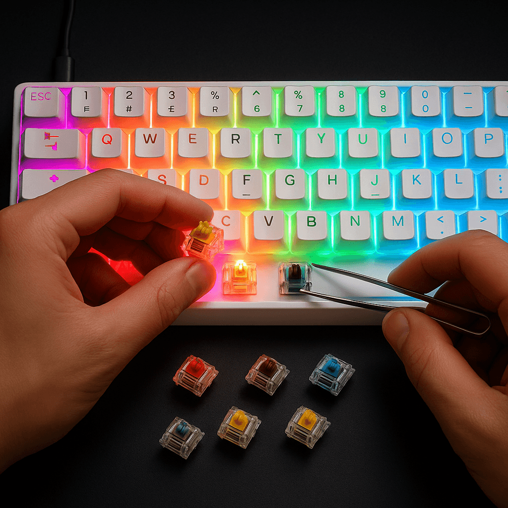 מערכת Hot-Swap מאפשרת להחליף מתגים תוך שניות, ללא הלחמה. בחרו את המתגים המתאימים לסגנון המשחק וההקלדה שלכם.