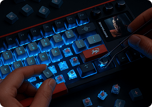 מקלדת הדגל שלנו, הזמינה בגרסת מקשי ה-Pudding היפייפים. בואו להנות מחווית משחק והקלדה מהשורה הראשונה. מותאמת ובנויה במיוחד בשביל להעצים את חווית המשחק שלכם. יחד עם נוחות מקסימלית ומהירות תגובה מידית, מקלדת זו גם ניתנת להתאמה אישית מלאה.